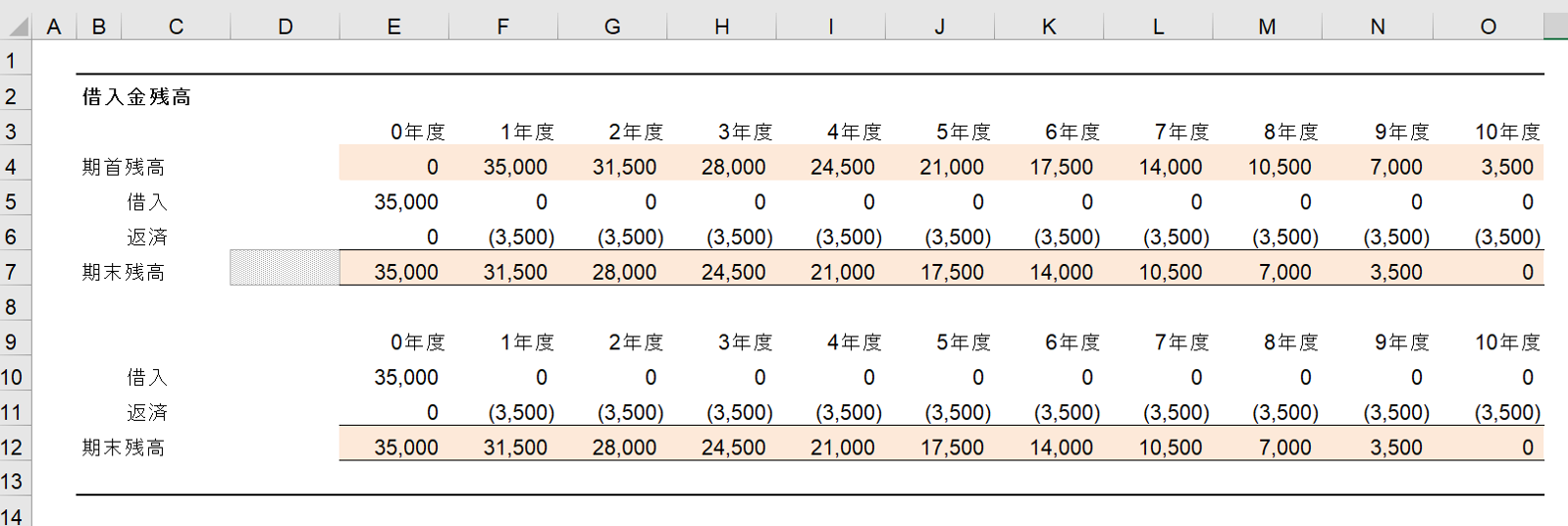 すでに出来上がったモデルを後から、上記のルールを適用するにはどうしたらいいのでしょうか。例えば、第三者が作成した以下のようなモデルをあなたがもらったとしましょう。どこの数字がベタ打ちで、どこの数字が数式かがわかりません。