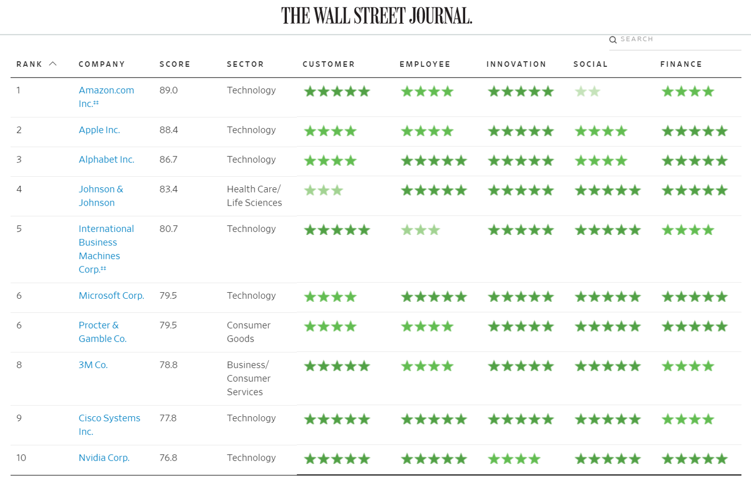 出典:ウォールストリートジャーナル(WSJ)ランキングのうち10位のみ