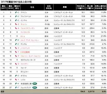 PwCの戦略コンサルティング会社Strategy&が、研究開発投資額の世界の上場企業トップ1,000社のランキングを発表しています。