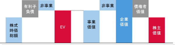 たとえば、株式時価総額とネット・デット(純有利子負債)から計算されたEVが100億円の企業があったとします。この場合、マーケットは、この企業の事業価値を100億円と考えていることになります。