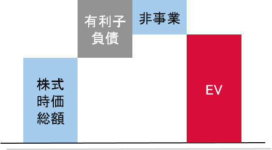 EV=株式時価総額(株価×発行済株式数)+ネット・デット(純有利子負債)